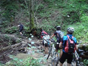 Tour bildet die Fahrt auf rauen Schotterpisten hinunter zur Weißen Ache. |